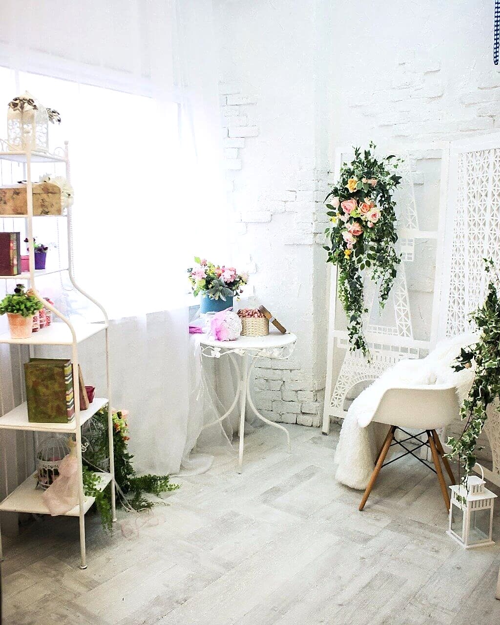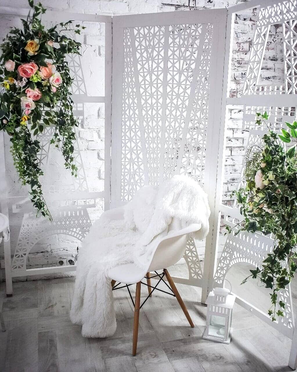 В одной комнате 48 м2 сразу три {keyword} зоны: белая стена, расположенная напротив окна, для разных интересных фото с естественным освещением, романтическая зона с окном и, любимые многими фотографами, стены с дизайнерской фактурной штукатуркой: белая и коричневая.