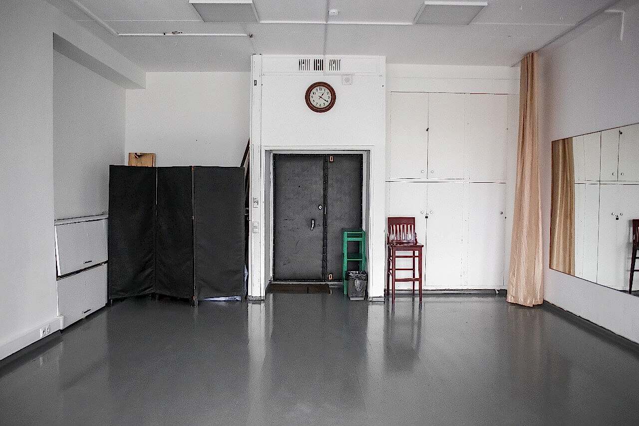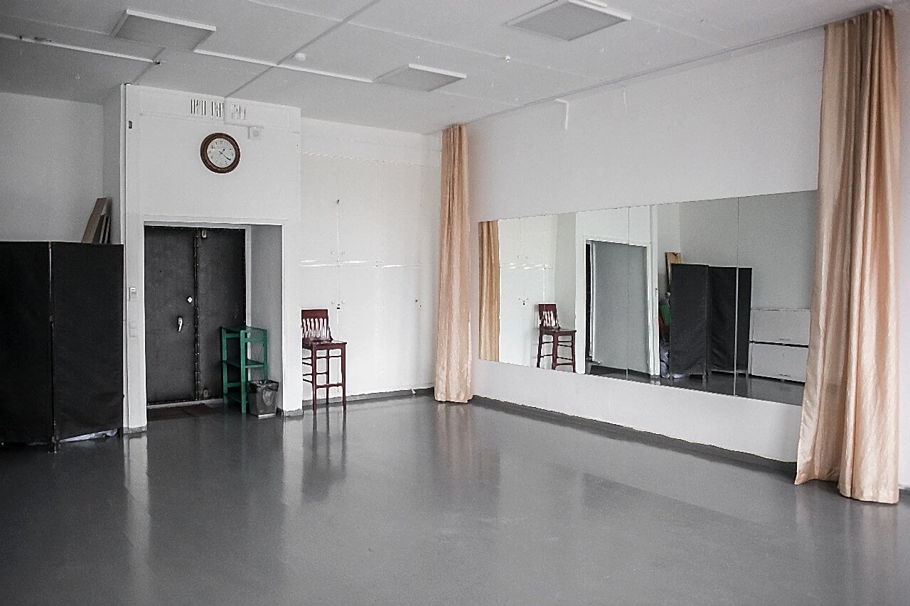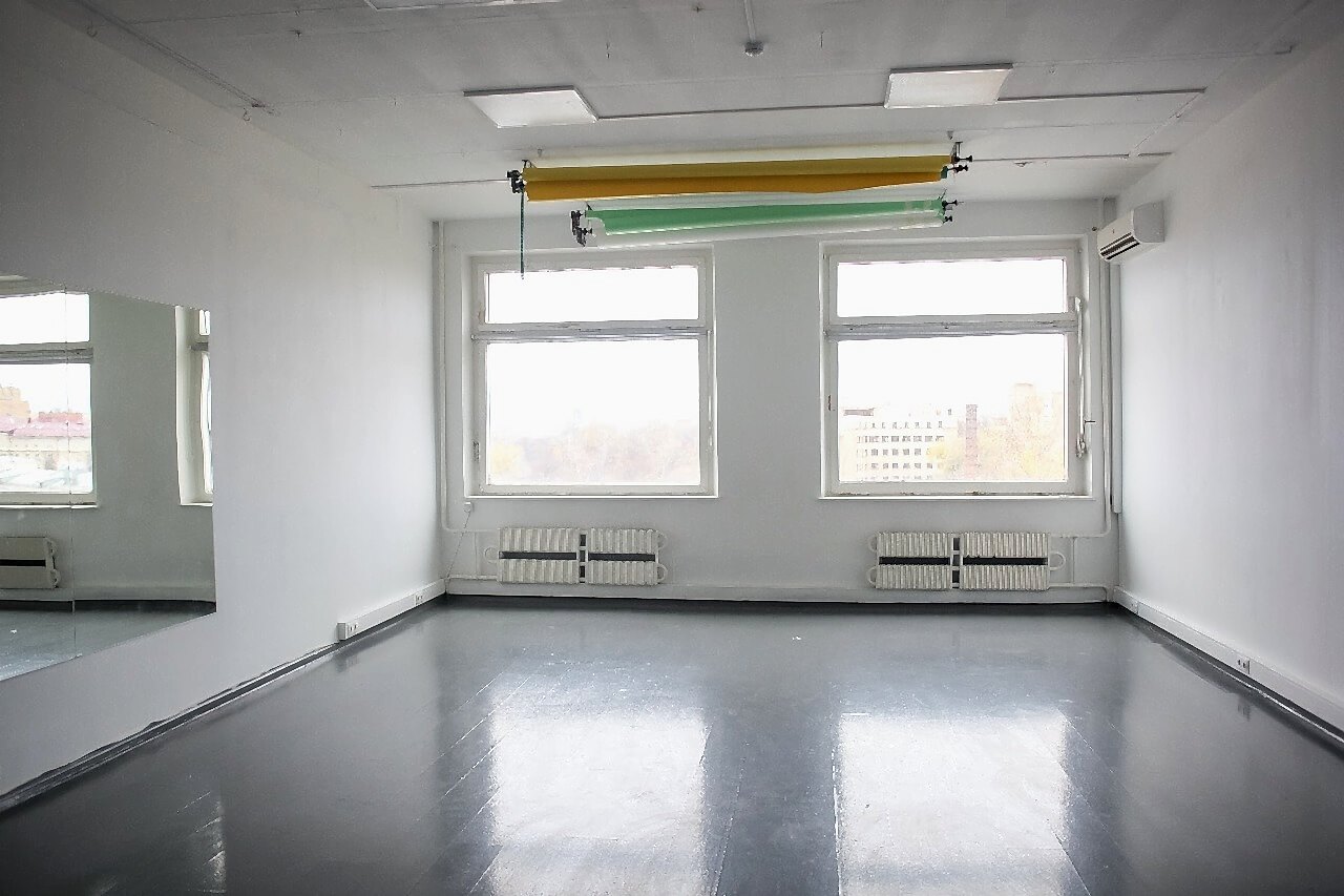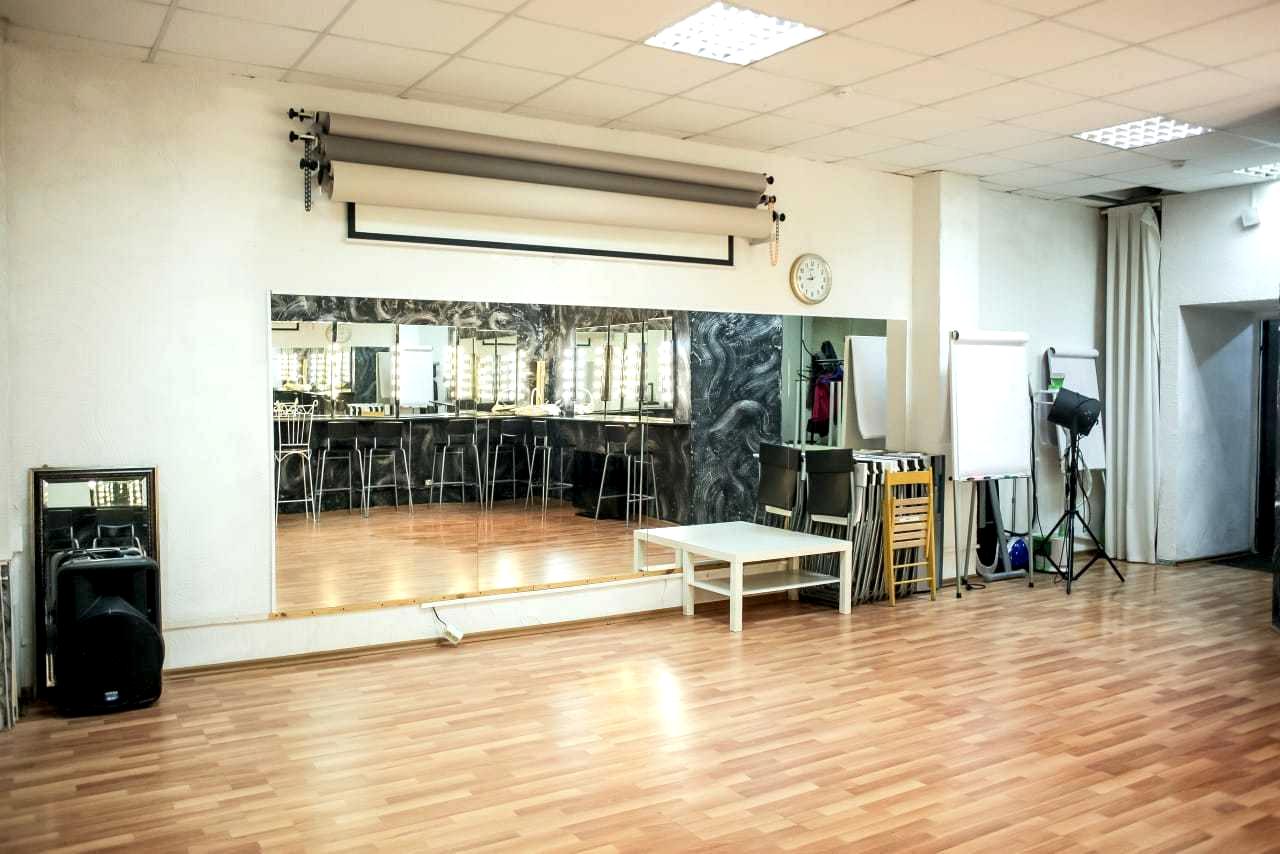Большие зеркала в полный рост понравятся танцорам - в зале площадью 55 м2 можно заниматься индивидуальными танцами или {keyword} до 10 человек.