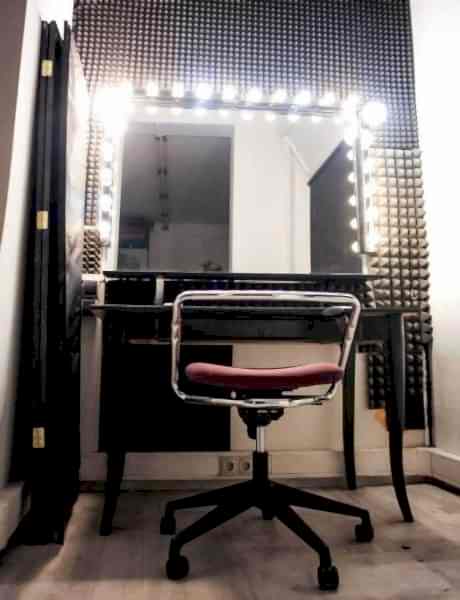 Гримерный уголок расположен непосредственно в зале и оборудован столиком и {keyword} освещением для комфортной работы.