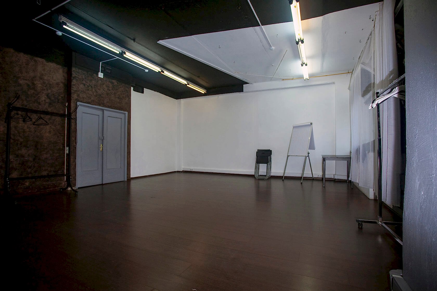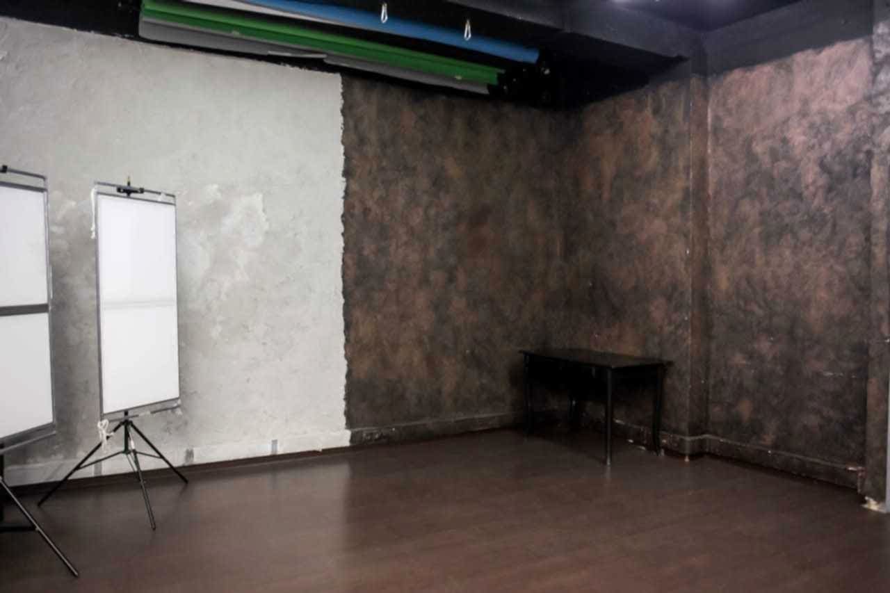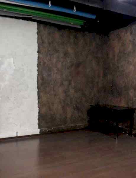 В одной комнате 48 м2 сразу три интересные зоны: белая стена, расположенная напротив окна, для разных интересных фото с естественным освещением, романтическая зона с окном и, любимые многими фотографами, стены с дизайнерской фактурной штукатуркой: белая и коричневая.
